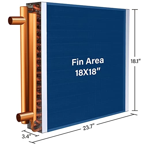 8 reviews for ALECOIL18x18 Water To Air Heat Exchanger 1“ Copper Ports Hot Water Coil For Outdoor Wood Furnaces, Forced Air Heating, Residential Heating And Cooling