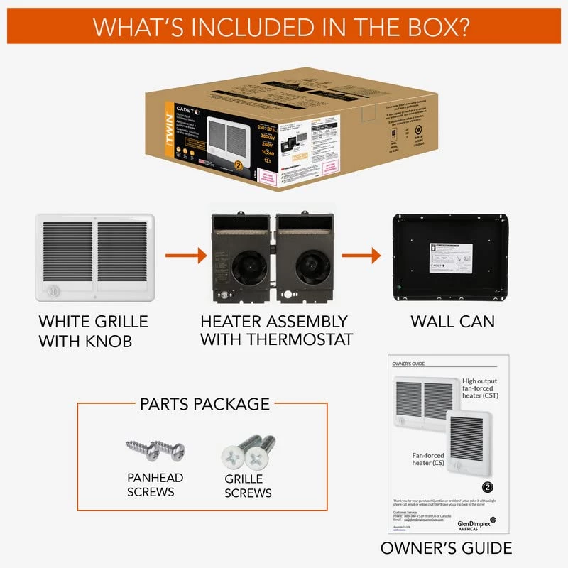 - Contents: Includes one Cadet Com-Pak Twin Complete Wall Heater with a thermostat in white.