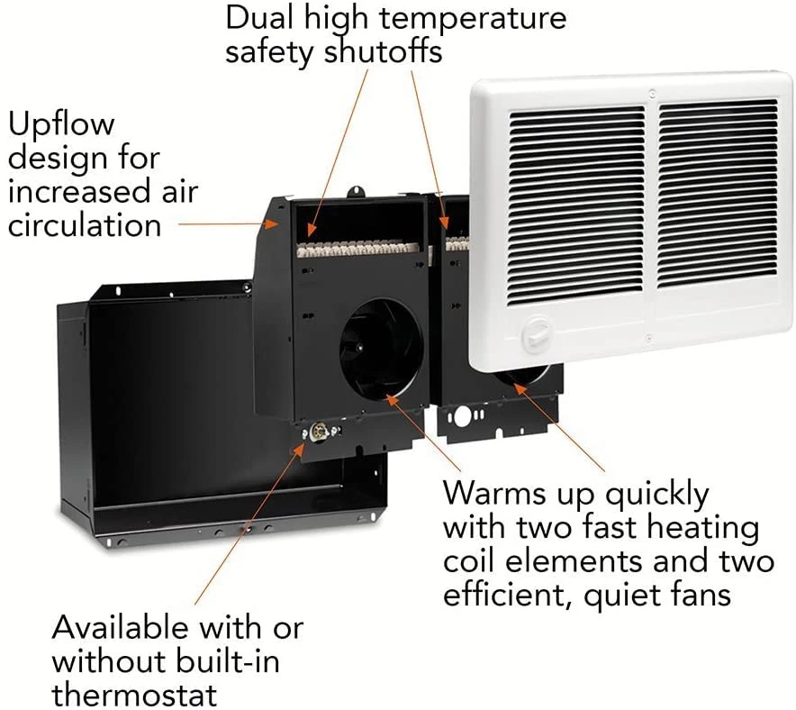 - Easy Installation: This heater connects to the wall can with two screws in a simple horizontal application.