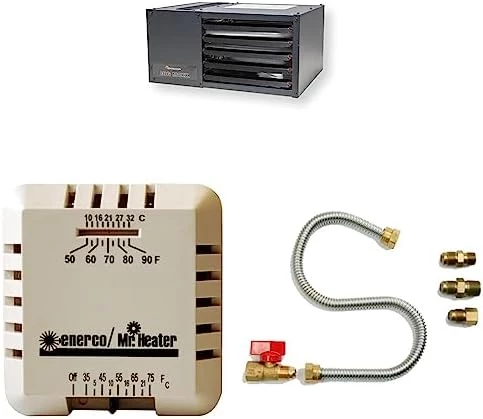 So worth the price, and very easy to install. Yeah the exhaust duct work costs almost as much as the unit itself. But We’ll Worth It!!! Heats up the Garage almost instantly, my Garage is a 1 1/2 car garage. It’s 12°outside currently in Buffalo NY. 01/20/2020. Turned the heater on and it was warm in 7 minutes, about 60°. The fan is quiet, don’t listen to the other reviews. Not saying that their unit was loud but maybe they had something wrong with their fan?? My garage is a Gym and to work out in the winter it’s great to have the Garage Heated. This unit goes ABOVE and BEYOND my EXPECTATIONS. Im VERY PLEASED with the performance, the ONLY advice i can give is that THE DIRECTIONS SAY TO pitch the duct work UP a quarter inch per foot. DO NOT pitch it UPWARD!! the CONDENSATION will run right into the heater. Their is a Fan their inside the unit that will get wet and ruined. I had to fix this because for 1 i could not find a 4″ piece that’s shown in the instructions that had that DRIP HOLE where you have to attach a drip hose to. I don’t know why you would want a hose hanging down from your exhaust anyway with nowhere to drain it to… “PRO TIP” So angle the duct work downward and this way the sweat/ Condensation will run outside – out of the exhaust. If not you’re going to have sweat and condensation running towards the heater ruining and rusting the inside of the heater. That’s the only thing that I seen in the instructions that were horribly wrong. Everything else was a breeze. The gas line, the electrical, the thermostat simple work. I am installing a smart thermostat so I can control it from my phone, So when I wanna go out there and work out I will turn to thermos son 5 minutes before I go out their.Thank you, hope this review helps someone.