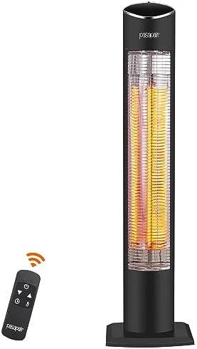 This review is the the Pasapair Electric Patio heater. It’s a great infrared heater. Warms up real quick. You can control it with the remote or the app. I find it easier to control with the app. You can change it between celsius or fahrenheit. You can set the temperature, power level and timer. I can feel the heat sitting 10 feet away when it’s on highest setting, it’s like sitting in front of a fire pit.