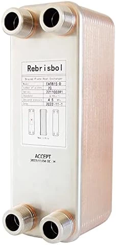 Be the first to review “Rebrisbol Brazed Plate Heat Exchanger 3″x8″ 40 Plates Water To Water Heat Exchanger, Copper/SS316L Stainless Steel 3/4″ Male NPT” Cancel reply