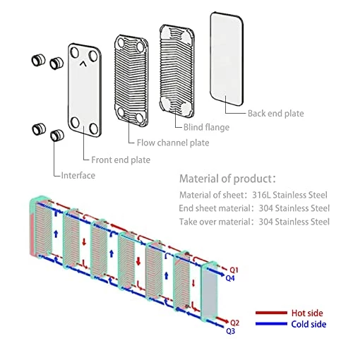 - 【Superior Design】- Special herring bone corrugation pattern of the plates not only creates a strong turbulent flow and move the media in opposite directions to get superior heat transfer rates and efficiency, but also prevents scaling from forming inside the unit and impress heat transfer rates.