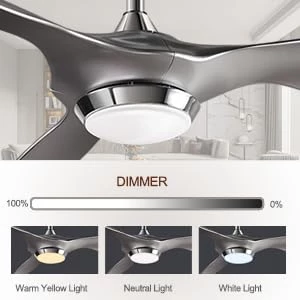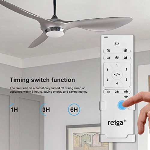 - Remote Control: All operations can be controlled by the remote control, adjust the lighting switch of the ceiling fan dimmiing (white light – warm light – yellow light), 6 wind speeds, and supports timing (1/3/6 hours) sleep shutdown. The fan or illumination can be turned on separately.