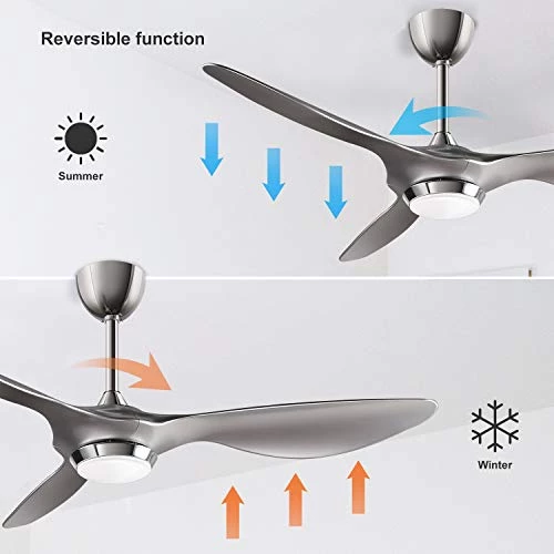 - Two-way rotation: The reversible control function allows you to switch the direction of the modern ceiling fan from downward airflow during the summer to upward during the cooler winter period to reclaim lost heat from the ceiling and and cutting down on energy costs.
