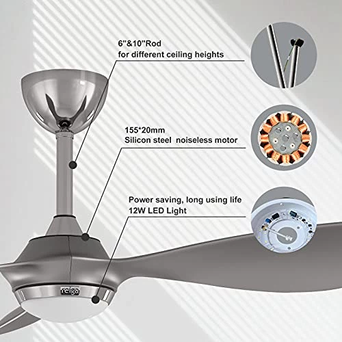 - Easy to install: Diameter 52 inches, 2 down-rods: 6 inch and 10 inch, for low and ceiling height, hanging system ensure that the fan is well balanced. The downrod diameter is 1.04”.